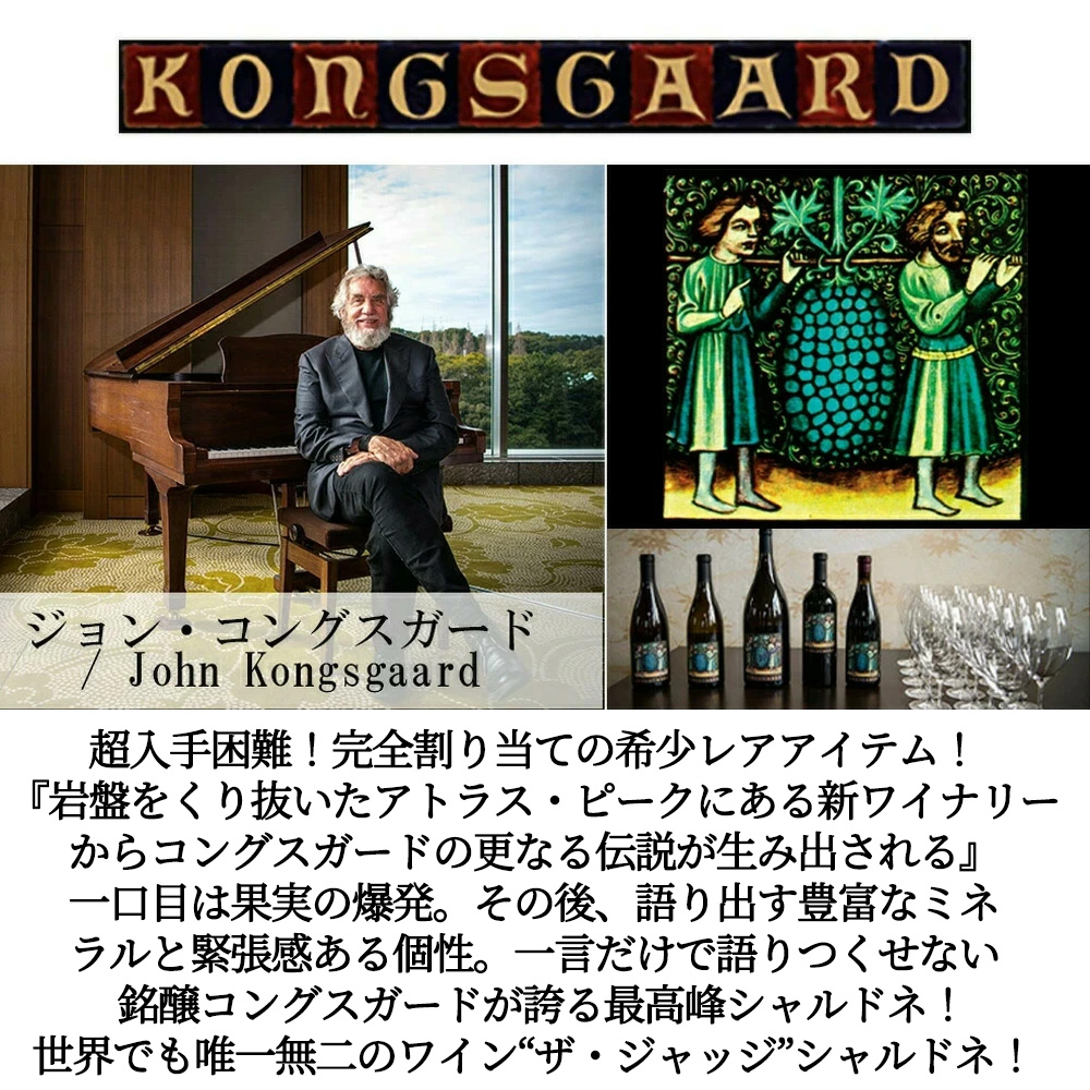 『クラッシック音楽が充満する岩盤をくり抜いたアトラス・ピークにあるワイナリーからコングスガードの更なる伝説が生み出される』以前、ロバート・パーカー氏がセラーでテイスティングした時に「ナパのバタール・モンラッシェだ」と称賛した逸話が残る銘醸コングスガードの究極シャルドネ!