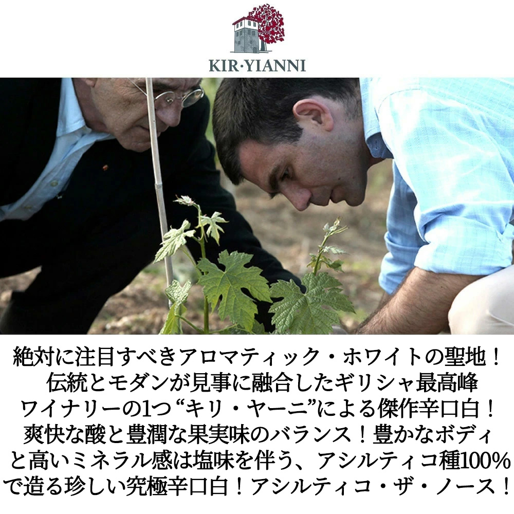ギリシャワイン愛好家大注目!辛口白ワイン愛好家大注目!ギリシャの名門「キリ・ヤーニ」が希少品種アシルティコ種100%で造る傑作白ワイン!ワインアドヴォケイト誌が“ギリシャ最高峰のワイン”に選んだ固有品種クシノマヴロ!世界のワイン評論家、マスター・オブ・ワインをも感動させる伝統とモダンが見事に融合した、鮮烈にして忘れられない味わい!