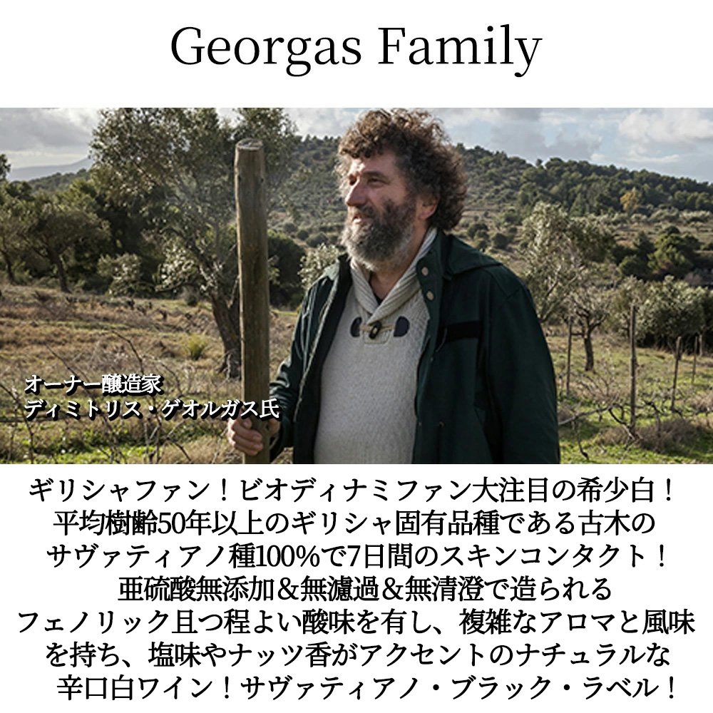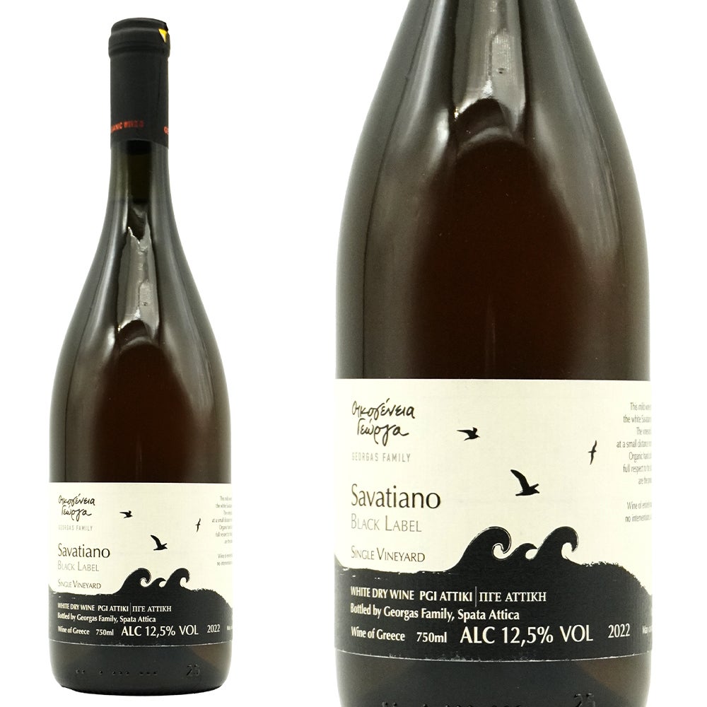 サヴァティアノ・ブラック・ラベル[2022]年・ゲオルガス・ファミリー・ギリシャ・セントラル・グリース・P.G.I.アッティカ・サヴァティアノ種100%・亜硫酸無添加・無濾過・ビオディナミDemeter認証・アルコール度数12.5%