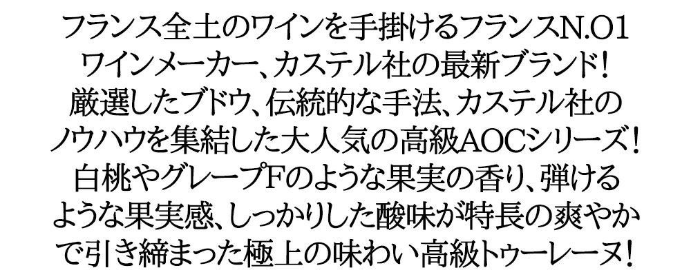 他の画像を見る メゾン カステル トゥーレーヌ 2024 カステル社 AOCトゥーレーヌMAISON CASTEL Touraine 2024 CASTEL AOC Touraine【eu_ff】 白ワイン フランス 辛口 当店特別価格 ¥ 1,233 税込 在庫切れ 詳細を見る お気に入りに登録する