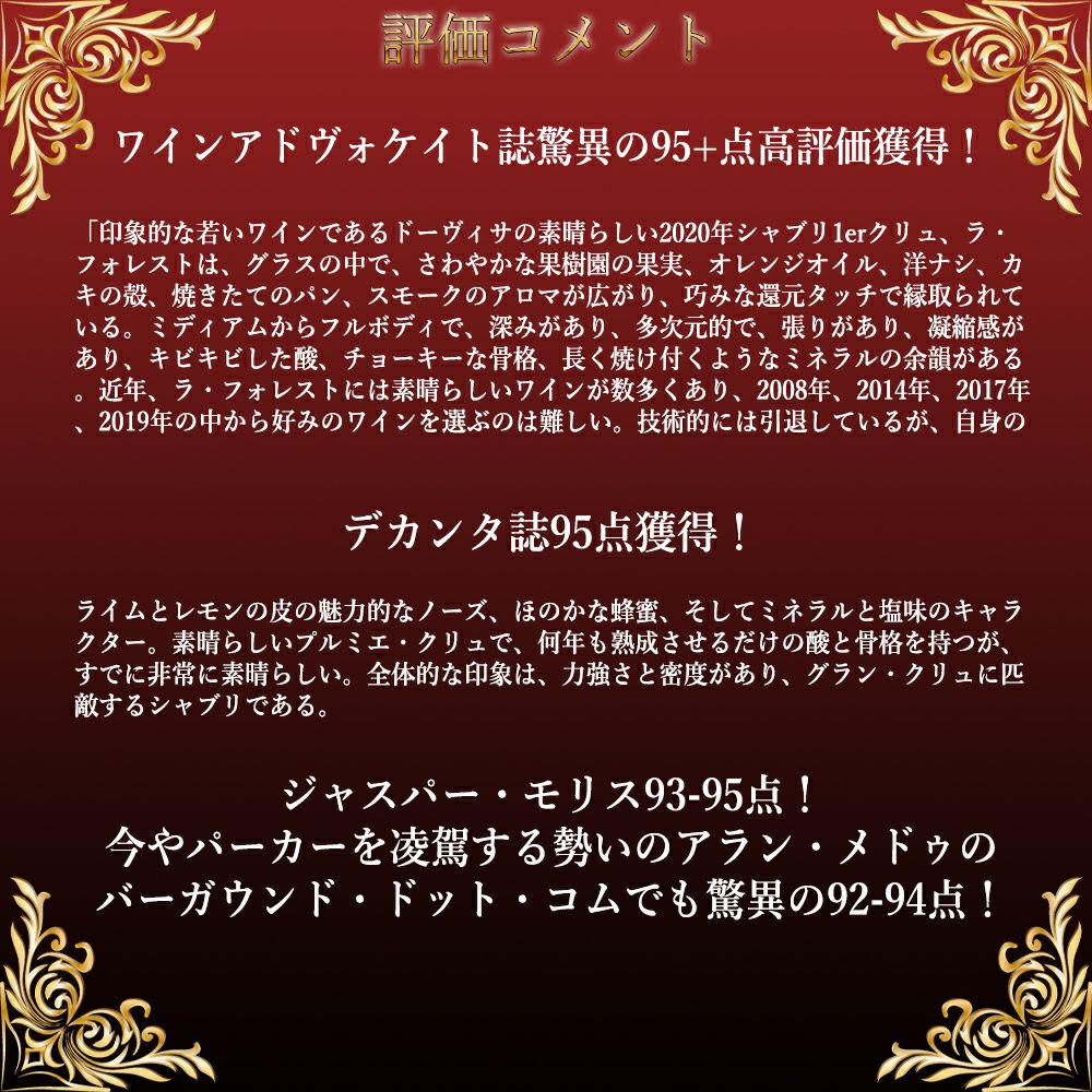 他の画像を見る シャブリ プルミエ クリュ 一級 ラ フォレ 2020ドメーヌ ヴァンサン ドーヴィサ元詰 蔵出し品 (正規品) AOCシャブリ プルミエ クリュChablis 1er Cru La Forest 2020 Domaine Vincent 白ワイン フランス 辛口 当店特別価格 ¥ 22,969 税込 在庫切れ 詳細を見る お気に入りに登録する