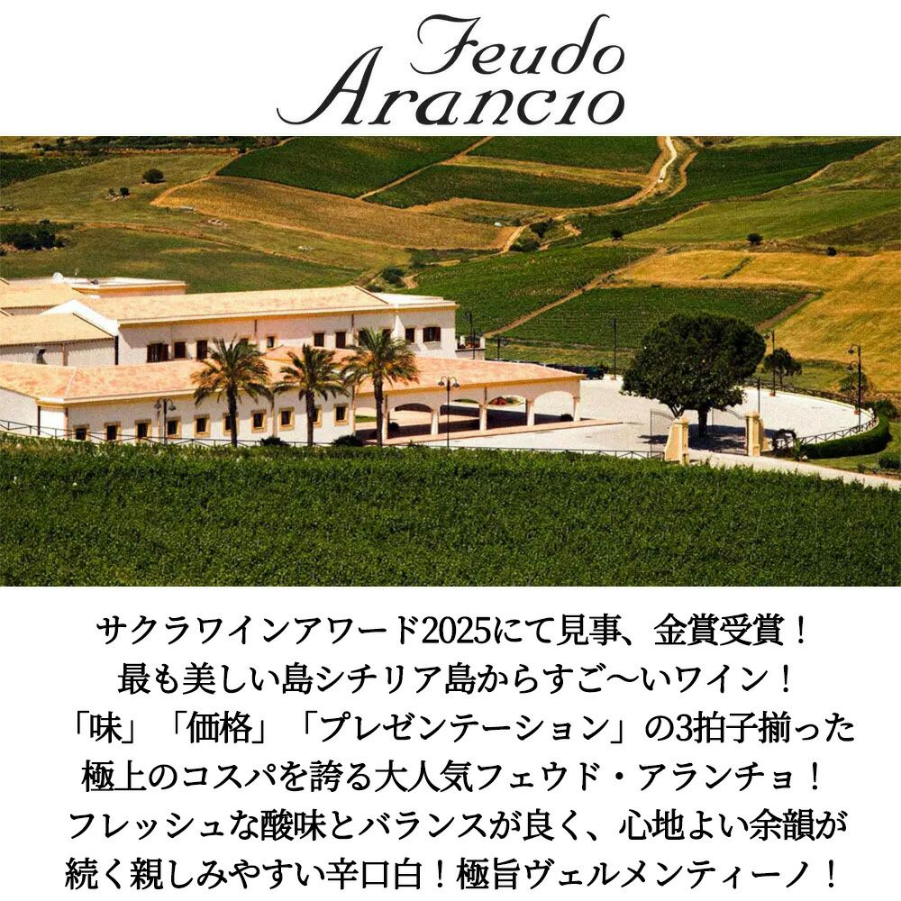 他の画像を見る フェウド アランチョ ヴェルメンティーノ 2023 DOCシチリア ヴェルメンティーノ種100% サクラワインアワード2025にて金賞受賞Feudo Arancio Vermentino 2023 DOC Sicilia 白ワイン イタリア 辛口 当店特別価格 ¥ 1,091 税込 カートに入れる お気に入りに登録する