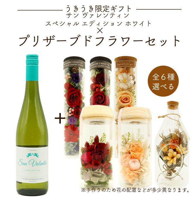 他の画像を見る 【うきうき限定ギフト】サン ヴァレンティン スペシャル エディション ホワイト 2023&選べる プリザーブドフラワーセット 花 フラワー ギフト プレゼント 贈り物 誕生日 お祝い 内祝い 母の日 ワイン 花 セット 当店特別価格 ¥ 3,239 税込 カートに入れる お気に入りに登録する