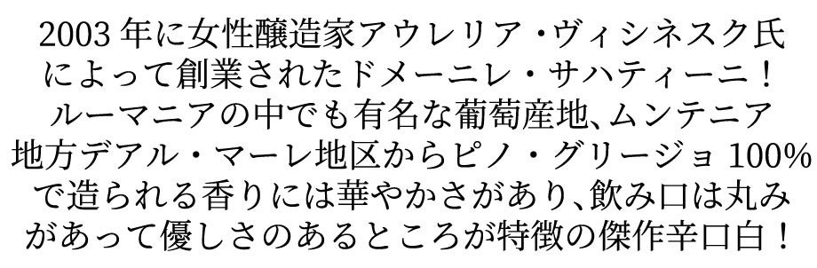 他の画像を見る ラ ヴィ ピノ グリージョ 2024 ドメーニレ サハティーニ IGデアルリレ ムンテニエイ ピノ グリージョ種100% ルーマニア 辛口 白Domeniile Sahateni La Vie Pinot Grigio 2024 IG 白ワイン 辛口 当店特別価格 ¥ 1,327 税込 カートに入れる お気に入りに登録する