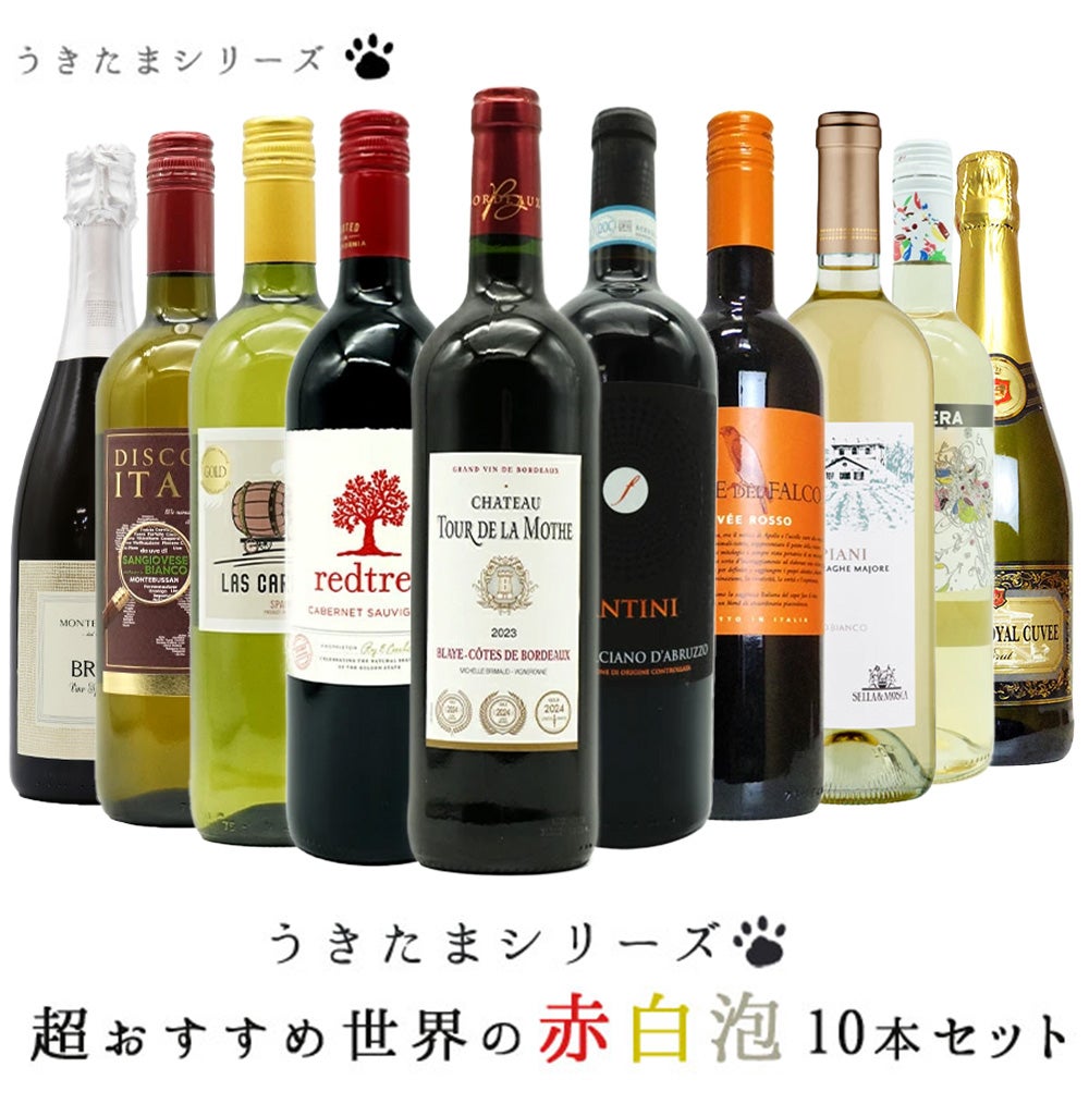 他の画像を見る 第5弾【送料無料】うきたまシリーズ 超おすすめ世界の赤白泡10本セット (追加2本まで同梱可 送料無料) ワインセット 赤ワイン 白ワイン スパークリング ワインセット 当店特別価格 ¥ 9,196 税込 カートに入れる お気に入りに登録する