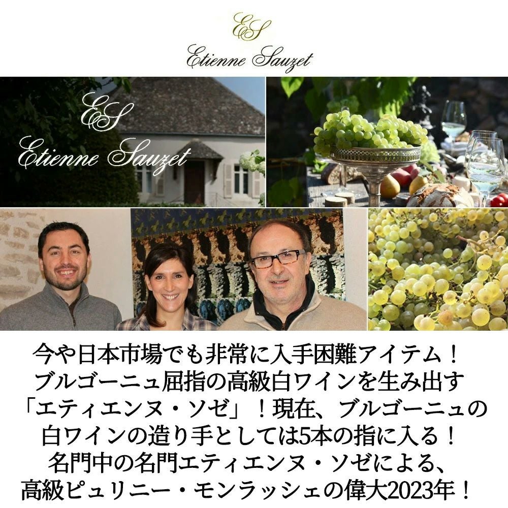 他の画像を見る ピュリニー モンラッシェ 2023 蔵出し品 エチエンヌ ソゼ(エティエンヌ ソゼ)元詰 重厚ボトル ロウ封印キャップ AOCピュリニー モンラッシェPuligny Montrachet 2023 Etienne Sauzet 白ワイン フランス 辛口 当店特別価格 ¥ 20,691 税込 在庫切れ 詳細を見る お気に入りに登録する