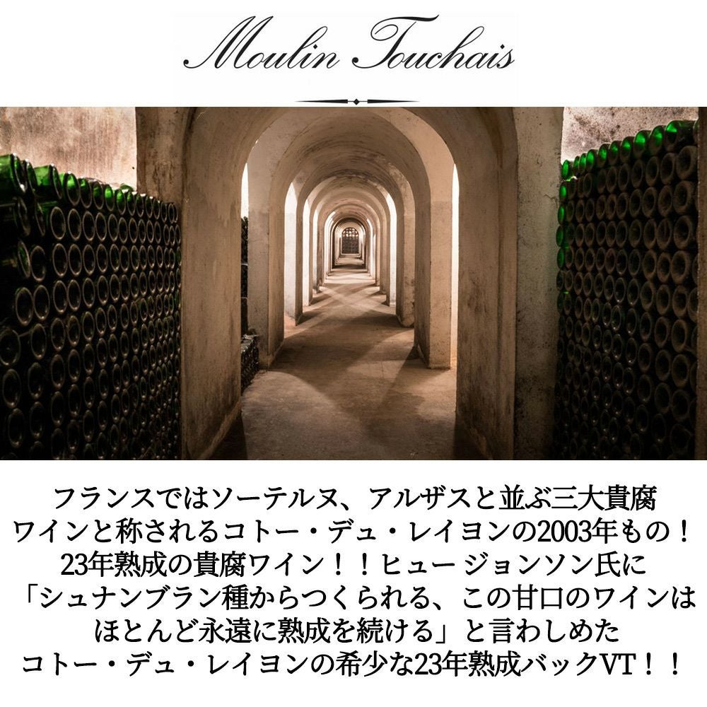 他の画像を見る コトー デュ レイヨン レゼルヴ 2003 究極限定秘蔵品 ドメーヌ トゥーシェ家 (ムーラン トゥーシェ家元詰) 元詰 AOCコトー デュ レイヨン 白ワイン フランス 極甘口 当店特別価格 ¥ 7,294 税込 在庫切れ 詳細を見る お気に入りに登録する