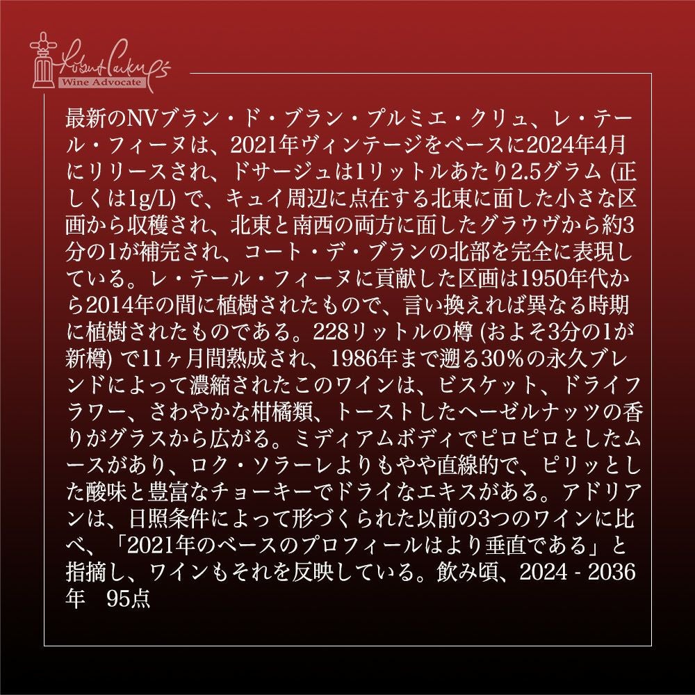 他の画像を見る 【大型サイズ】ドント グルレ シャンパーニュ プルミエ クリュ 一級 レ テール フィーヌ (2021) エクストラ ブリュット ブラン ド ブランMG Dhondt-Grellet Champagne 1er Cru (Premier Cru) Les Terres Fines (2021) スパークリング シャンパン フランス 当店特別価格 ¥ 33,232 税込 在庫切れ 詳細を見る お気に入りに登録する