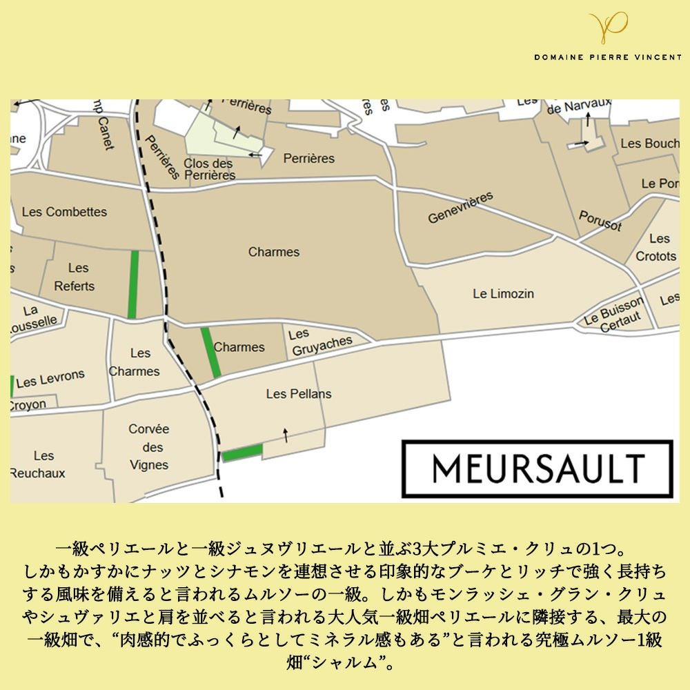 他の画像を見る ムルソー プルミエ クリュ 一級 レ シャルム 2023 蔵出し限定品 ドメーヌ ピエール ヴァンサン元詰 年産わずか1180本のみMeursault 1er Cru Charmes 2023 Domaine Pierre Vincent 白ワイン フランス 辛口 当店特別価格 ¥ 62,491 税込 在庫切れ 詳細を見る お気に入りに登録する