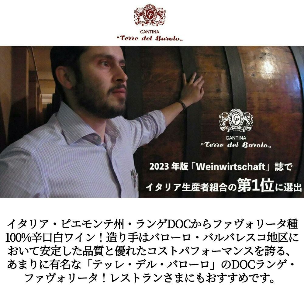 他の画像を見る ランゲ ファヴォリータ 2024 テッレ デル バローロ元詰 ファヴォリータ種100% DOCランゲ ファヴォリータ 12.5% 750ml 白Langhe Favorita 2024 Terre del Barolo DOC Langhe 白ワイン イタリア 辛口 当店特別価格 ¥ 2,006 税込 在庫切れ 詳細を見る お気に入りに登録する