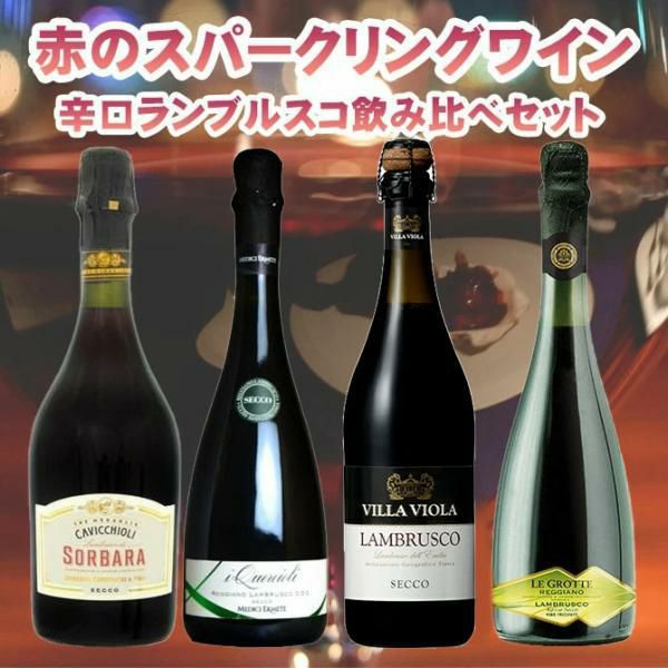 ランブルスコ・赤の泡(イタリア産スパークリング)・辛口飲み比べ4本セット