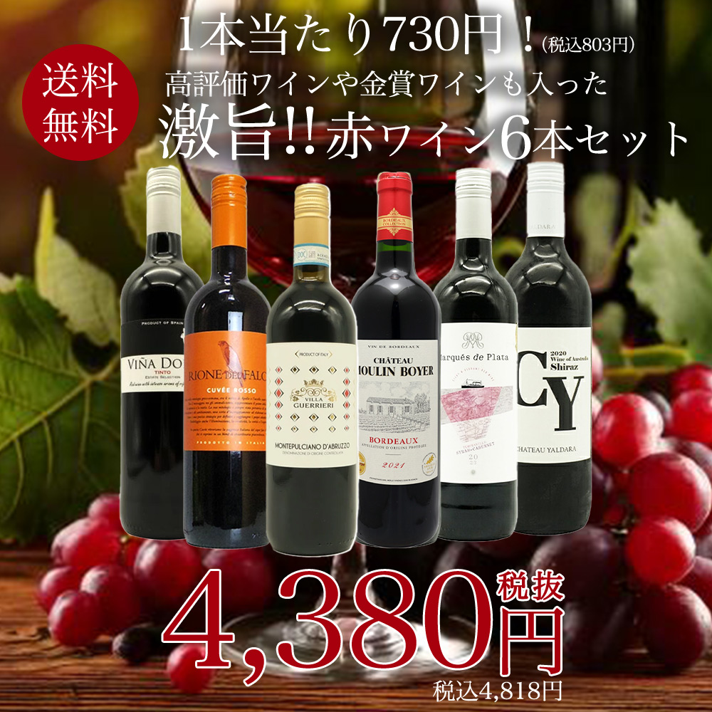 【送料無料】玉手箱厳選!高評価ワインや金賞ワインも入った激旨赤6本セット ワインセット