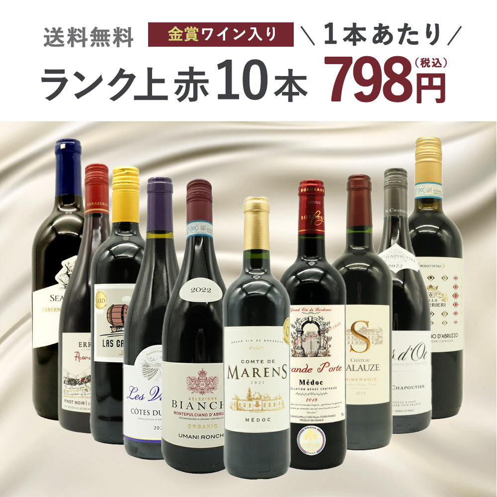 【送料無料】ワインセット ランク上の赤ワイン大集結!1本あたりたったの798円(税込)!金賞受賞ワインも入ってこの価格!ブドウ品種も色々!玉手箱厳選赤ワイン10本セット(追加2本同梱可)