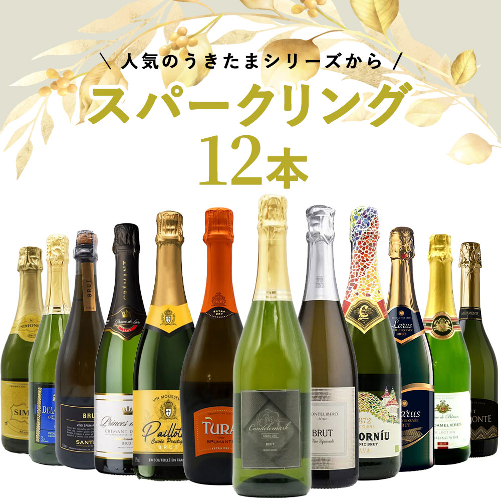【送料無料】うきたまシリーズ スパークリング12本 ワインセット シャンパン スパークリングワイン 泡 辛口 瓶内二次発酵 カヴァ クレマン