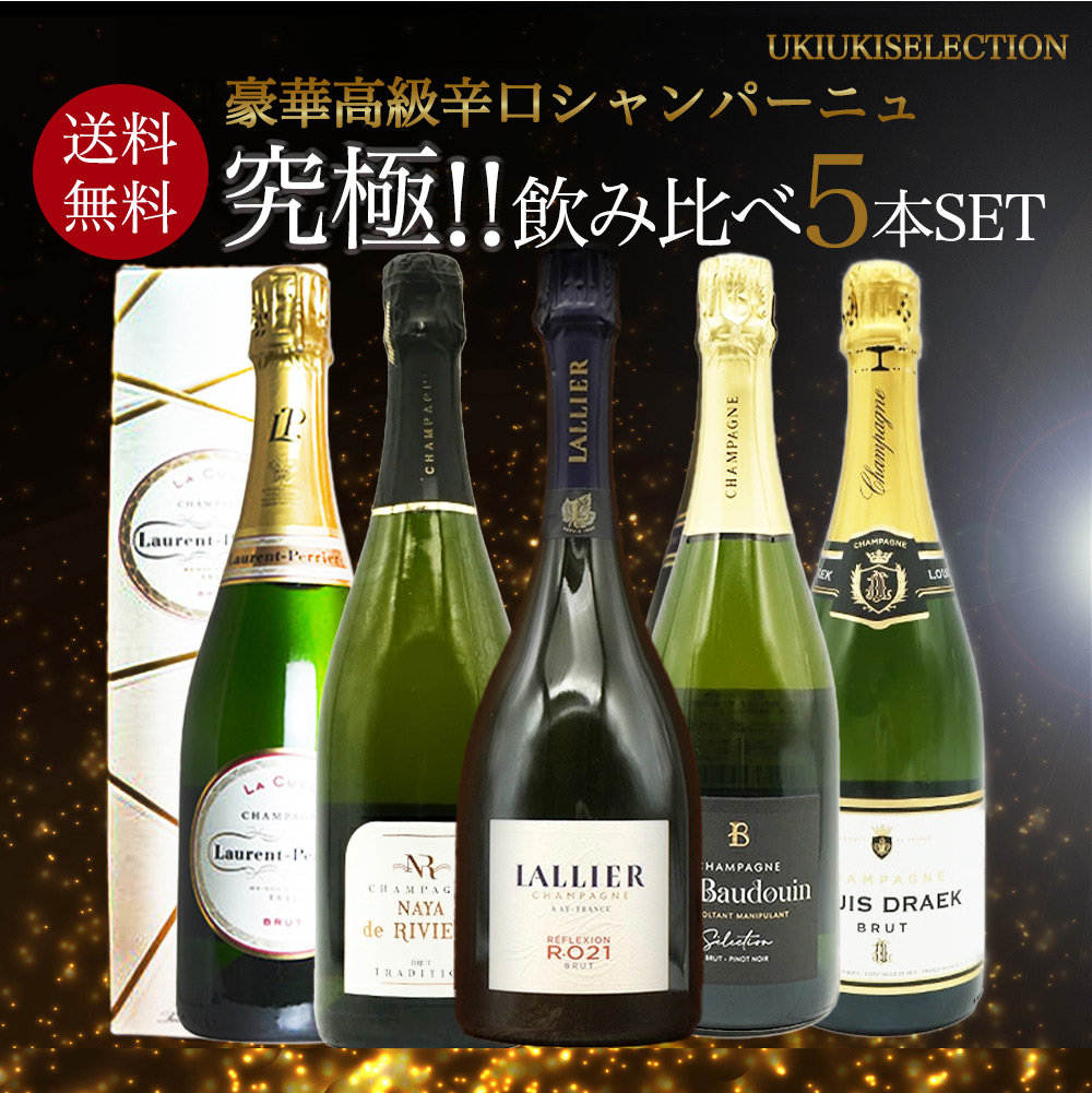 ルイ・ローデレールにもブドウを販売している由緒ある造り手による傑作シャンパーニュ!シャンパンでの乾杯はもちろん、お料理とも食前酒から前菜、魚料理まで幅広くお楽しみ頂ける!ルイ・ドレーク・シャンパーニュ・ブリュットが1本!の、計5本スペシャル・シャンパーニュセット!