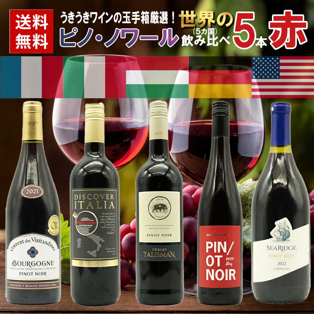 【送料無料】 うきうきワインの玉手箱厳選!世界のピノ ノワール (5カ国) 飲み比べ5本赤ワインセット ワイン ワインセット