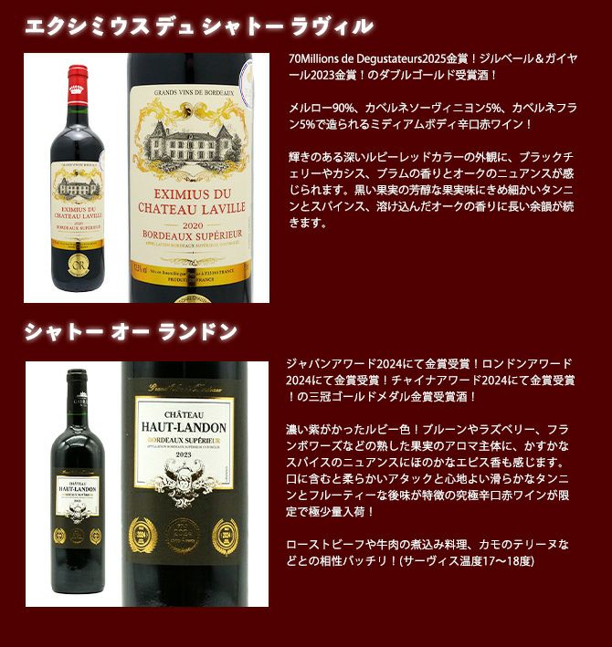 他の画像を見る 【送料無料】うきうき高級ボルドー人気急上昇地域!厳選 豪華金賞受賞酒 究極赤ワイン飲み比べ6本セット SSspecial03mar13_food ワインセット 赤ワイン ワインセット フランス 送料無料 当店特別価格 ¥ 7,294 税込 カートに入れる お気に入りに登録する