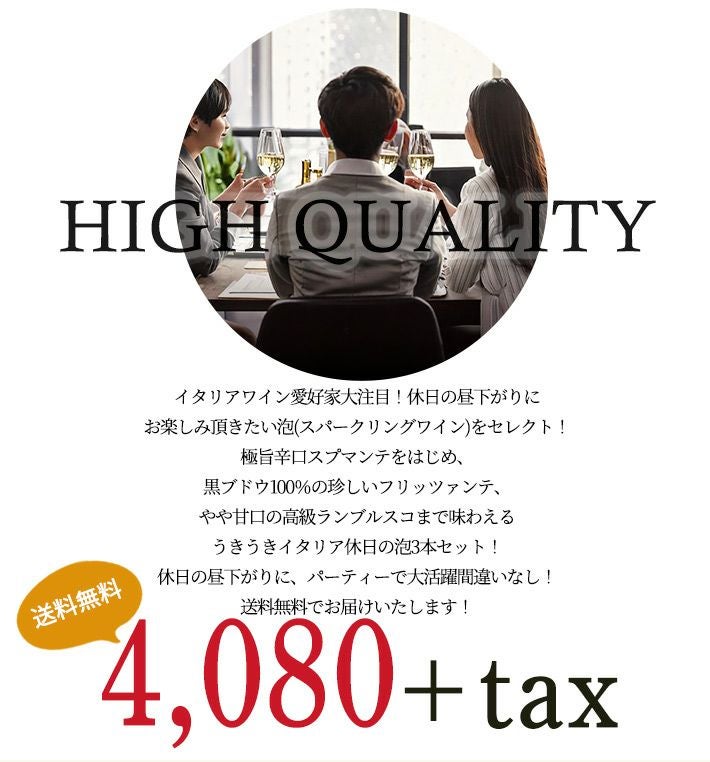 他の画像を見る 【送料無料】うきうきイタリア休日の泡(スパークリング)飲み比べ3本ワインセットItalian holiday Sparkling Wine 3 SET By UKIUKI WINE ワインセット イタリア 送料無料 当店特別価格 ¥ 2 税込 在庫切れ 詳細を見る お気に入りに登録する