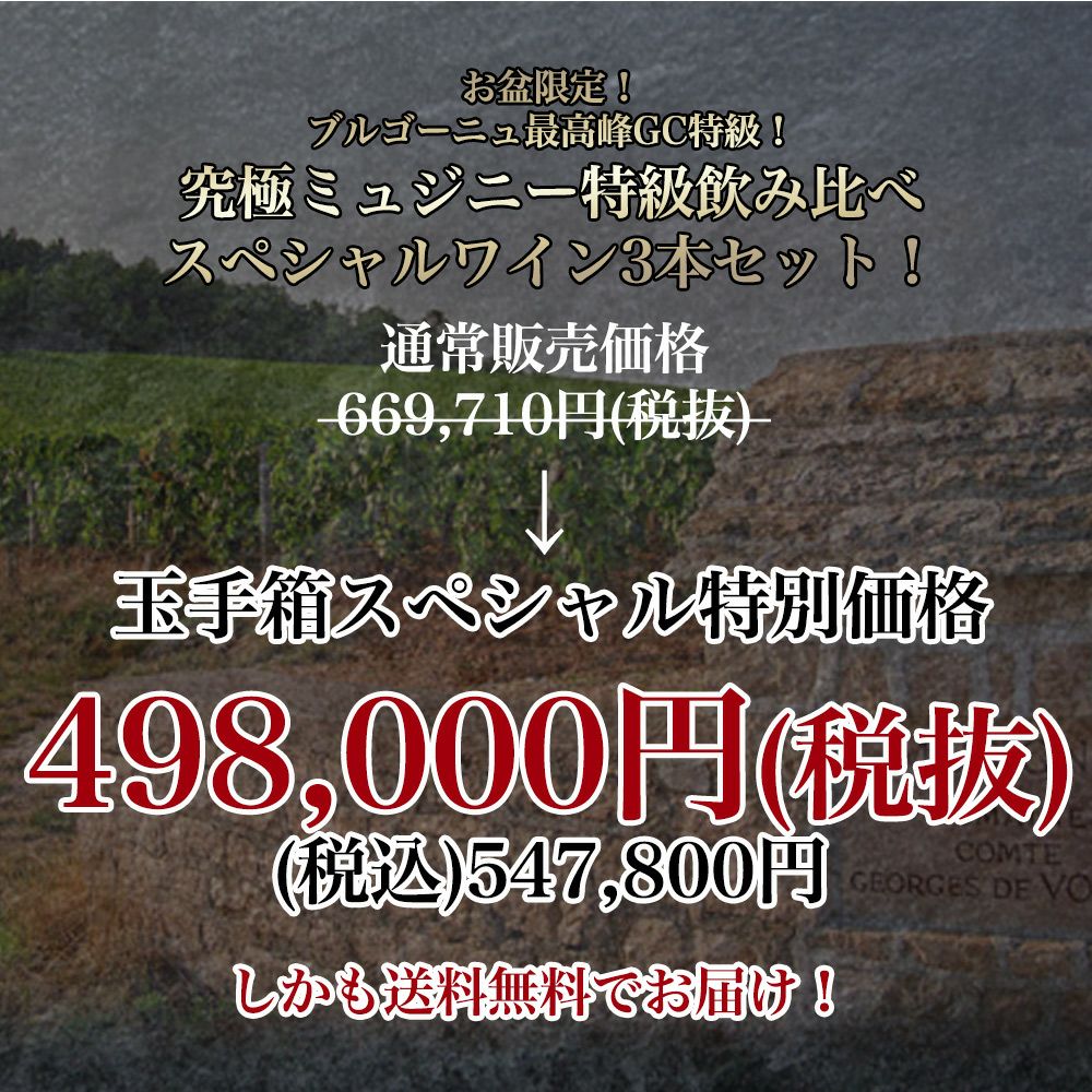他の画像を見る 【送料無料】お盆限定!ブルゴーニュ最高峰GC特級!究極ミュジニー特級飲み比べスペシャルワイン3本セット ミュジニー ワインセット 赤ワイン フランス フルボディ 辛口 当店特別価格 ¥ 520,410 税込 在庫切れ 詳細を見る お気に入りに登録する