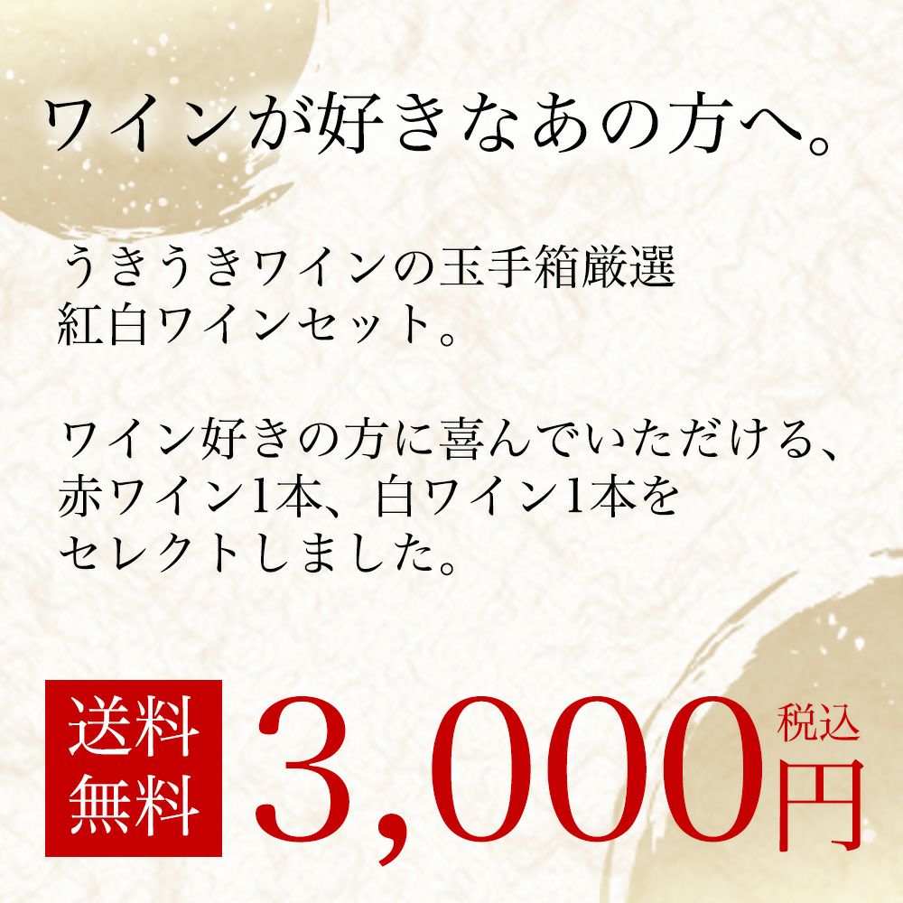 他の画像を見る 感謝の気持ちを込めて!紅白ワインギフトセット 3000円セット(無料ギフト箱 無料ラッピング 無料のし) 赤ワイン 白ワイン ワインセット 送料無料 当店特別価格 ¥ 2,850 税込 在庫切れ 詳細を見る お気に入りに登録する