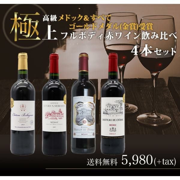 他の画像を見る 【送料無料】極上高級メドック&すべてゴールドメダル(金賞)受賞 フルボディ赤ワイン飲み比べ4本セットMedoc Gold Medal 4 Set 赤ワイン フランス フルボディ 送料無料 当店特別価格 ¥ 6,249 税込 在庫切れ 詳細を見る お気に入りに登録する