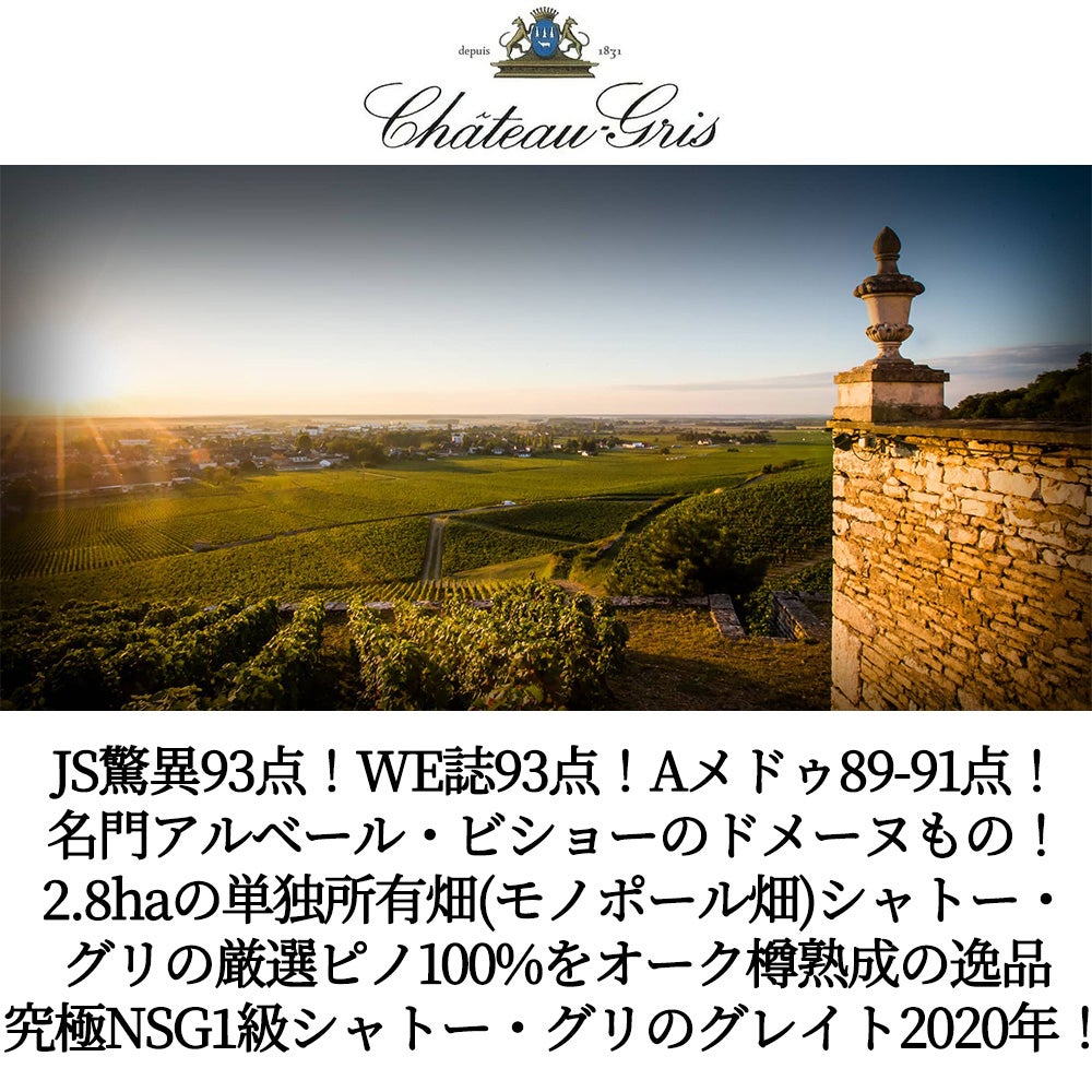 他の画像を見る ニュイ サン ジョルジュ プルミエ クリュ 一級 シャトー グリ モノポール 2019 蔵出し限定品 シャトー グリ元詰 正規品 重厚ボトルNuits Saint Georges 1er Cru Chateau Gris 2019 Chateau Gris AOC Nuits Saint Georges 1er Cru(Albert Bichot) 赤ワイン フランス フルボディ 辛口 当店特別価格 ¥ 11,390 税込 カートに入れる お気に入りに登録する