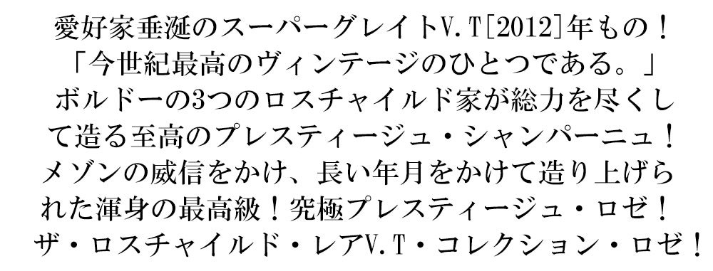 他の画像を見る ザ ロスチャイルド シャンパーニュ レア コレクション ロゼ[2012]年 バロン ド ロスチャイルド 豪華ギフト木箱Barons de Rothschild The Rothschild Rare Collection Rose [2012] 当店特別価格 ¥ 52,041 税込 カートに入れる お気に入りに登録する