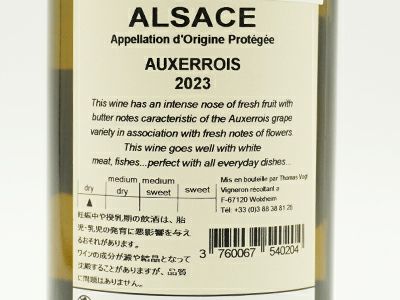 他の画像を見る アルザス オーセロワ 2023 ドメーヌ ローラン ヴォグト元詰 オーセロワ種100% 自然派 ビオディナミ AOCアルザス オーセロワAlsace Auxerrois 2023 Domaine Laurent Vogt 白ワイン フランス やや辛口 自然派 当店特別価格 ¥ 2,070 税込 カートに入れる お気に入りに登録する