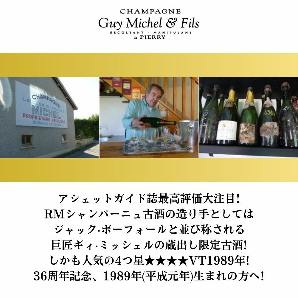 他の画像を見る ギー ミッシェル シャンパーニュ パリ フォリ ブリュット ミレジム 1989 R.M(生産者元詰) AOCミレジム シャンパーニュGuy Michel & Fils Champagne Paris-Folies Millesime 1989 白ワイン スパークリング フランス 辛口 当店特別価格 ¥ 21,138 税込 カートに入れる お気に入りに登録する