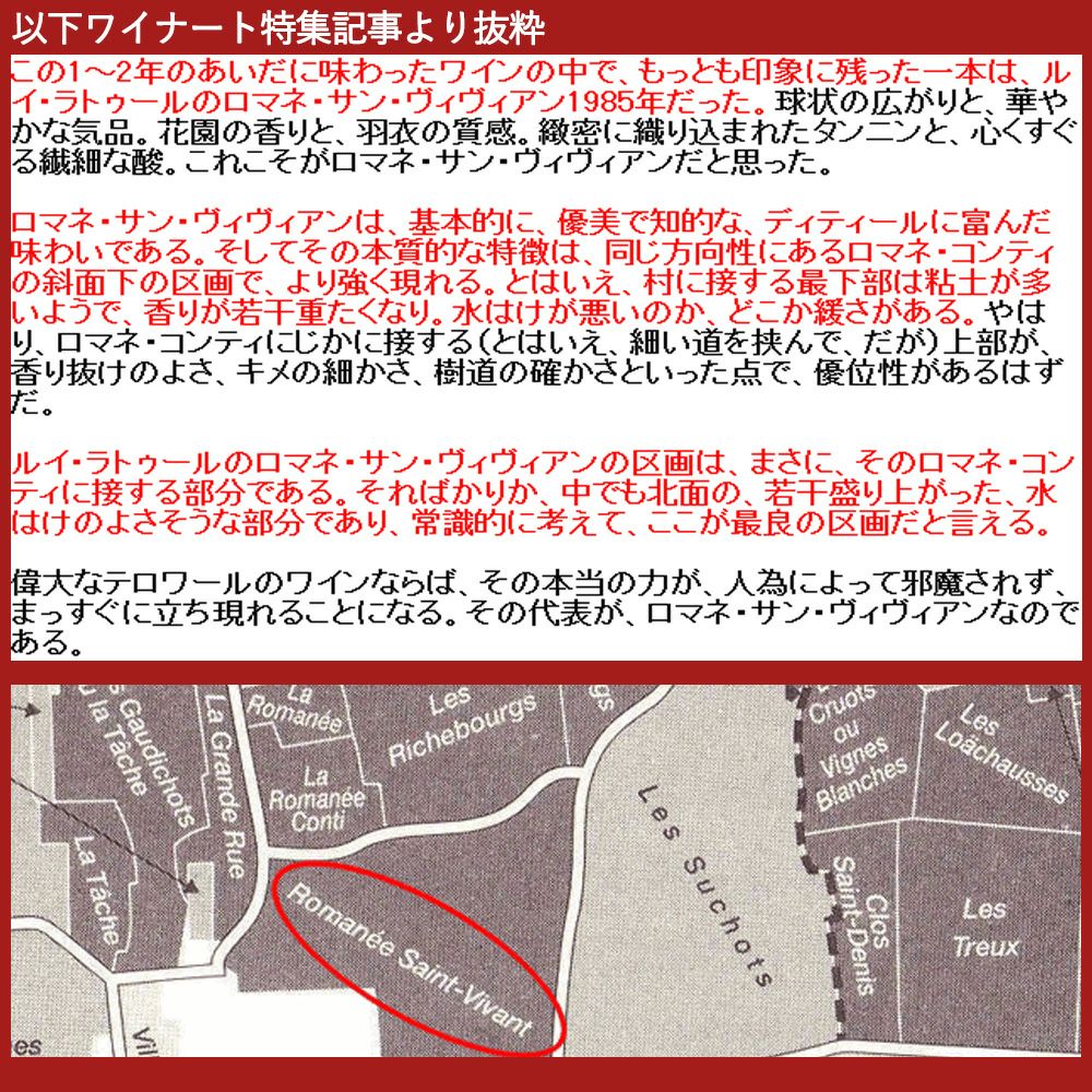 他の画像を見る 【エチケット傷あり】ロマネ サン ヴィヴァン グラン クリュ 特級 レ キャトル ジュルノー 2013 ドメーヌ ルイ ラトゥール元詰Romanee St-Vivant Grand Cru Les Quatre Journaux 赤ワイン フランス フルボディ 辛口 当店特別価格 ¥ 111,909 税込 在庫切れ 詳細を見る お気に入りに登録する