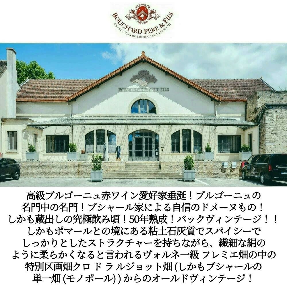 他の画像を見る ヴォルネ プルミエ クリュ 一級 フレミエ クロ ド ラ ルジョット モノポール 1976 蔵出し ドメーヌ ブシャール ペール エ フィス元詰Volnay 1er Cru Fremiets Clos de La Rougeotte 1976 赤ワイン フランス フルボディ ミディアムボディ 辛口 当店特別価格 ¥ 56,809 税込 在庫切れ 詳細を見る お気に入りに登録する