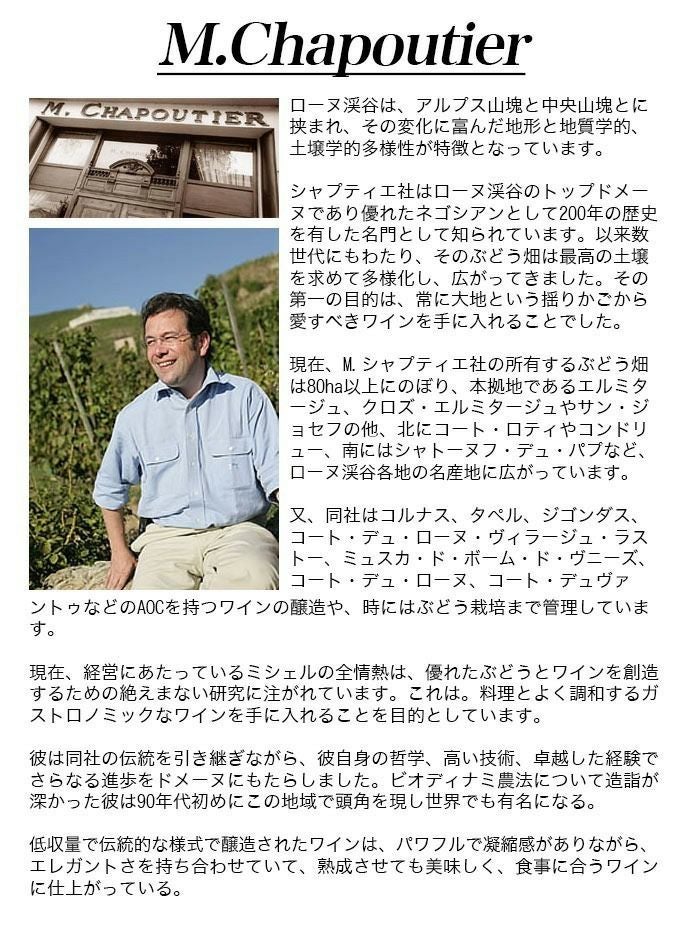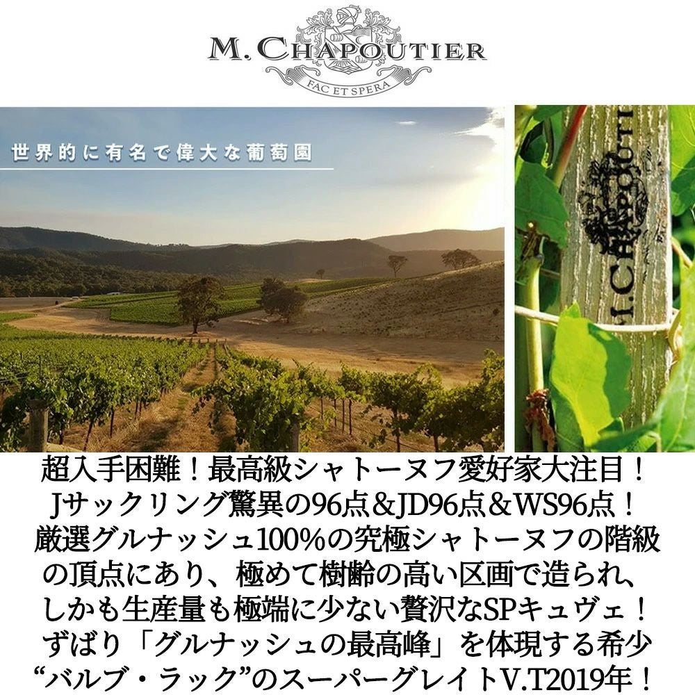 他の画像を見る シャトーヌフ デュ パプ バルブ ラック ルージュ 2019 セレクション パーセレールもの M.シャプティエ社 AOC ロウ封印ボトル 自然派Chateauneuf-du-Pape Barbe Rac Rouge 2019 赤ワイン フランス フルボディ 辛口 自然派 当店特別価格 ¥ 13,564 税込 在庫切れ 詳細を見る お気に入りに登録する