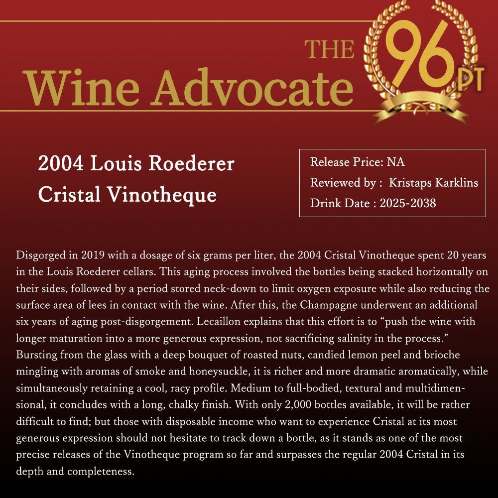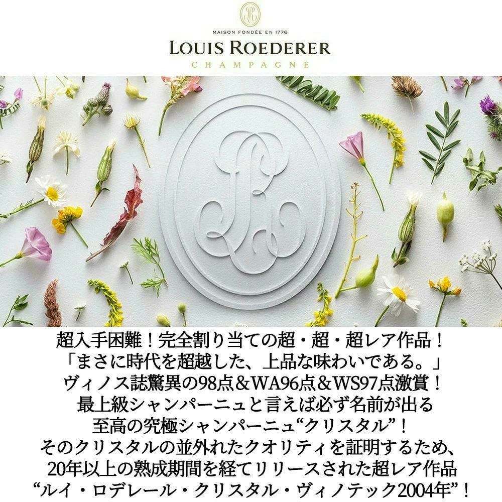 他の画像を見る 【豪華箱入】ルイ ロデレール シャンパーニュ クリスタル ヴィノテック 2004 ギフトボックス付き 正規品 AOCミレジメ シャンパーニュLouis Roederer Champagne Cristal Vinotheque Gift Box 白ワイン スパークリング シャンパン フランス 辛口 当店特別価格 ¥ 197,505 税込 在庫切れ 詳細を見る お気に入りに登録する