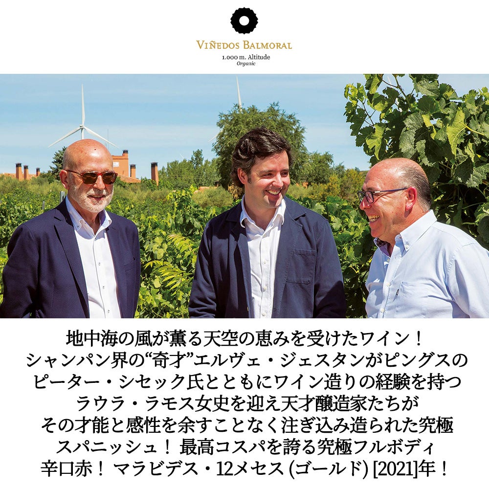 他の画像を見る 【箱入】マラビデス 12メセス(ゴールド) 2021 ビネドス バルモラル元詰 フレンチオーク樽100%で12ヶ月熟成 フルボディ 赤 辛口Maravides 12meses 2021 Vinedos Balmoral 赤ワイン イタリア フルボディ 辛口 当店特別価格 ¥ 1,651 税込 在庫切れ 詳細を見る お気に入りに登録する