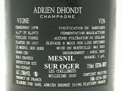 他の画像を見る アドリアン ドント シャンパーニュ グラン クリュ 特級 クーレメ ミレジメ 2020 蔵出し限定品 R.M ドメーヌ ドント グルレ元詰 自然派DHONDT-GRELLET (Adrien Dhondt) Le Mesnil Sur Oger シャンパン フランス 辛口 自然派 当店特別価格 ¥ 29,910 税込 在庫切れ 詳細を見る お気に入りに登録する