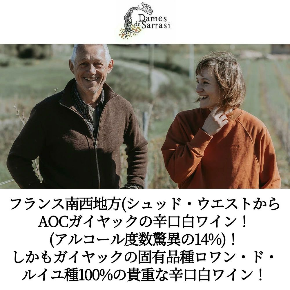 他の画像を見る メリジャンヌ ガイヤック ブラン 2023 ドメーヌ ダーム ド サッラシ元詰 (ブルーノ&マリー モントル家) AOC 自然派 度数驚異の14%Melijeanne Gaillac Blanc 2023 Dames de Sarrasi 白ワイン フランス 辛口 自然派 当店特別価格 ¥ 3,401 税込 カートに入れる お気に入りに登録する