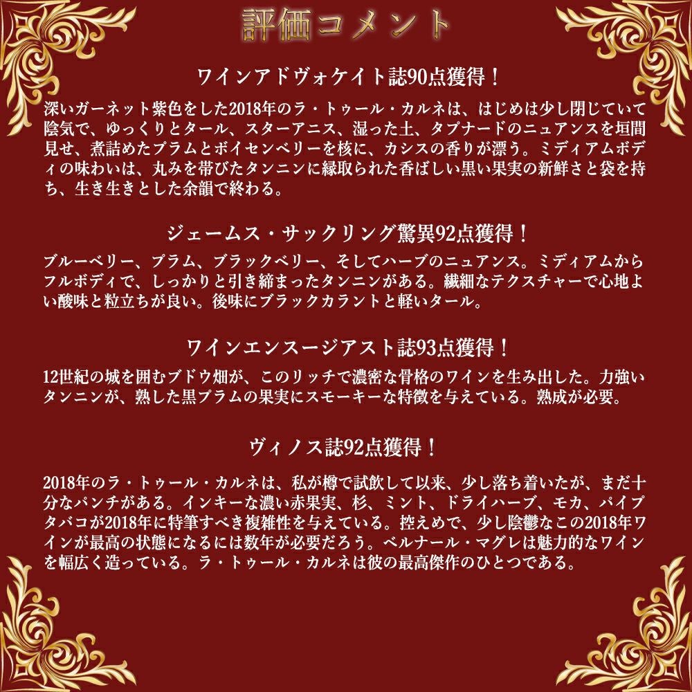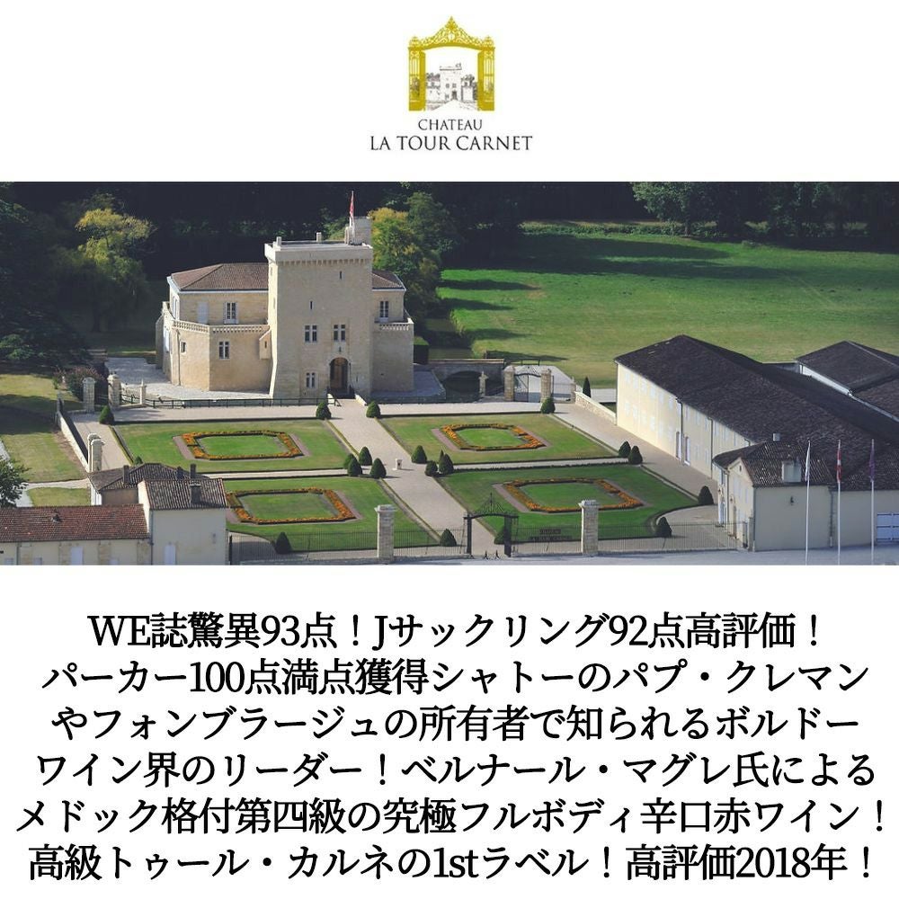 他の画像を見る シャトー ラ トゥール カルネ 2018 グラン クリュ クラッセ メドック公式格付第4級 重厚ボトル AOCオー メドックChateau La Tour Carnet 2018 Grand Cru Classe du Medoc en 185 赤ワイン フランス フルボディ 辛口 当店特別価格 ¥ 5,726 税込 在庫切れ 詳細を見る お気に入りに登録する