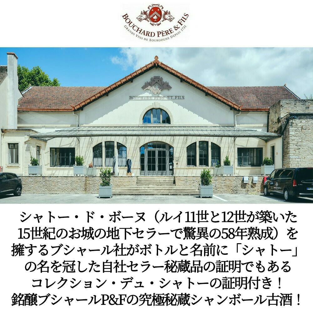 他の画像を見る 【木箱入り】シャンボール ミュジニー コレクション デュ シャトー 1967 超希少秘蔵品 ブシャール ペール エ フィス社 正規品Chambolle Musigny 1967 Bouchard Pere & Fils 赤ワイン フランス フルボディ 辛口 当店特別価格 ¥ 85,376 税込 在庫切れ 詳細を見る お気に入りに登録する