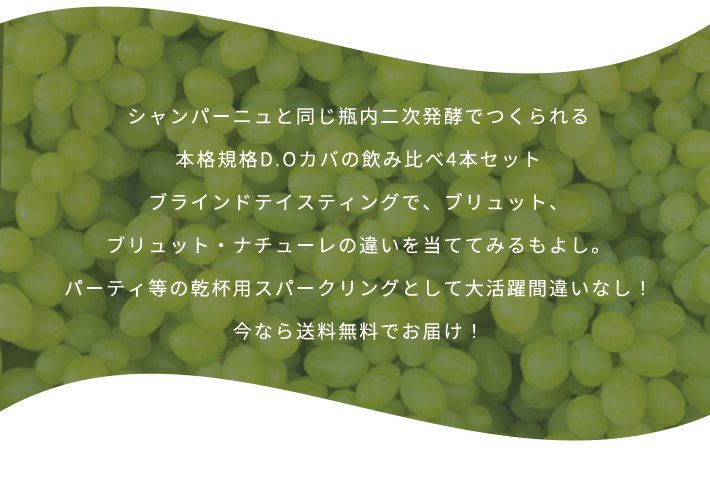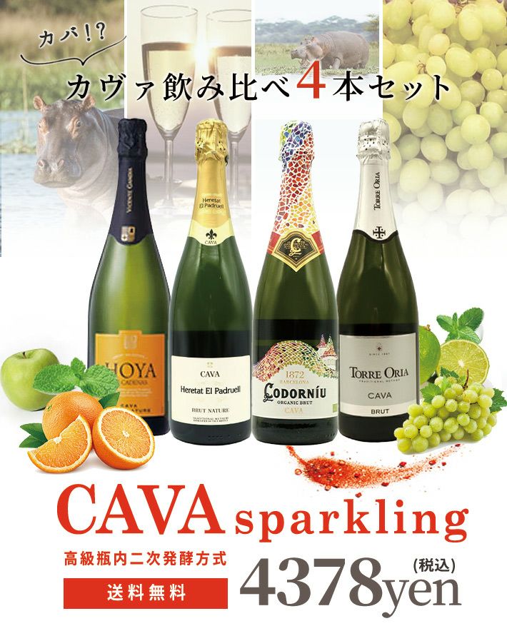 他の画像を見る 【送料無料】カヴァ カバ カヴァ カバ 4本飲み比べスペシャルセット 高級シャンパン方式(高級瓶内二次発酵方式) D.O.カバ 高級スパークリングCAVA CAVA CAVA CAVA Special 4 SET ワインセット 白ワイン スパークリング ワインセット スペイン 送料無料 当店特別価格 ¥ 4,159 税込 在庫切れ 詳細を見る お気に入りに登録する