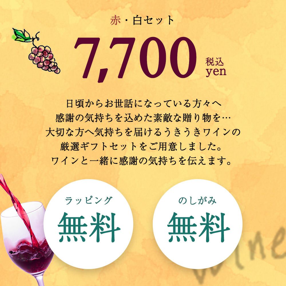 他の画像を見る 【うきうきワインの贈り物】感謝の気持ちを込めて!赤白2本セット 7000円セットB (ご希望の方には無料ギフト箱 無料ラッピング 無料のし) ワインセット 当店特別価格 ¥ 7,315 税込 在庫切れ 詳細を見る お気に入りに登録する