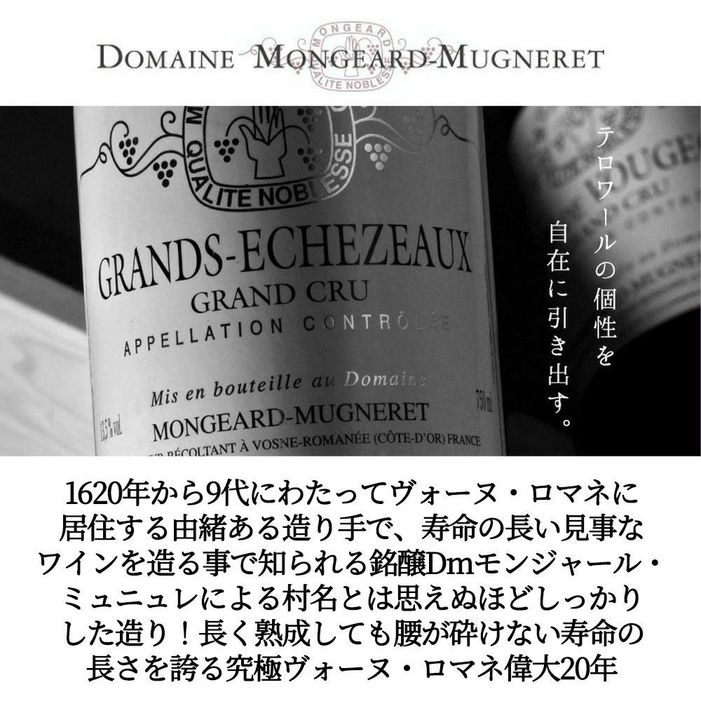 他の画像を見る ヴォーヌ ロマネ 2019 ドメーヌ モンジャール ミュニュレ元詰 蔵出し AOCヴォーヌ ロマネ 赤ワイン 辛口 フルボディ 750mlVosne Romanee 2019 Domaine Mongeard-Mugneret AOC Vosne Romanee 赤ワイン フランス フルボディ 当店特別価格 ¥ 9,906 税込 在庫切れ 詳細を見る お気に入りに登録する