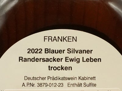 他の画像を見る ランダースアッカー エーヴィヒ レーベン ブラウアー シルヴァーナー カビネット トロッケン フランケン 2022 トロッケネ シュミッツRandersacker Ewig Leben Blauer Silvaner 白ワイン ドイツ 辛口 当店特別価格 ¥ 2,842 税込 カートに入れる お気に入りに登録する