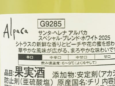 他の画像を見る サンタ ヘレナ アルパカ スペシャル ブレンド ホワイト 2025 DOセントラル ヴァレーSanta Helena Alpaca Special Blend White 2025 chile(Valley-Central) 白ワイン チリ 辛口 当店特別価格 ¥ 522 税込 カートに入れる お気に入りに登録する