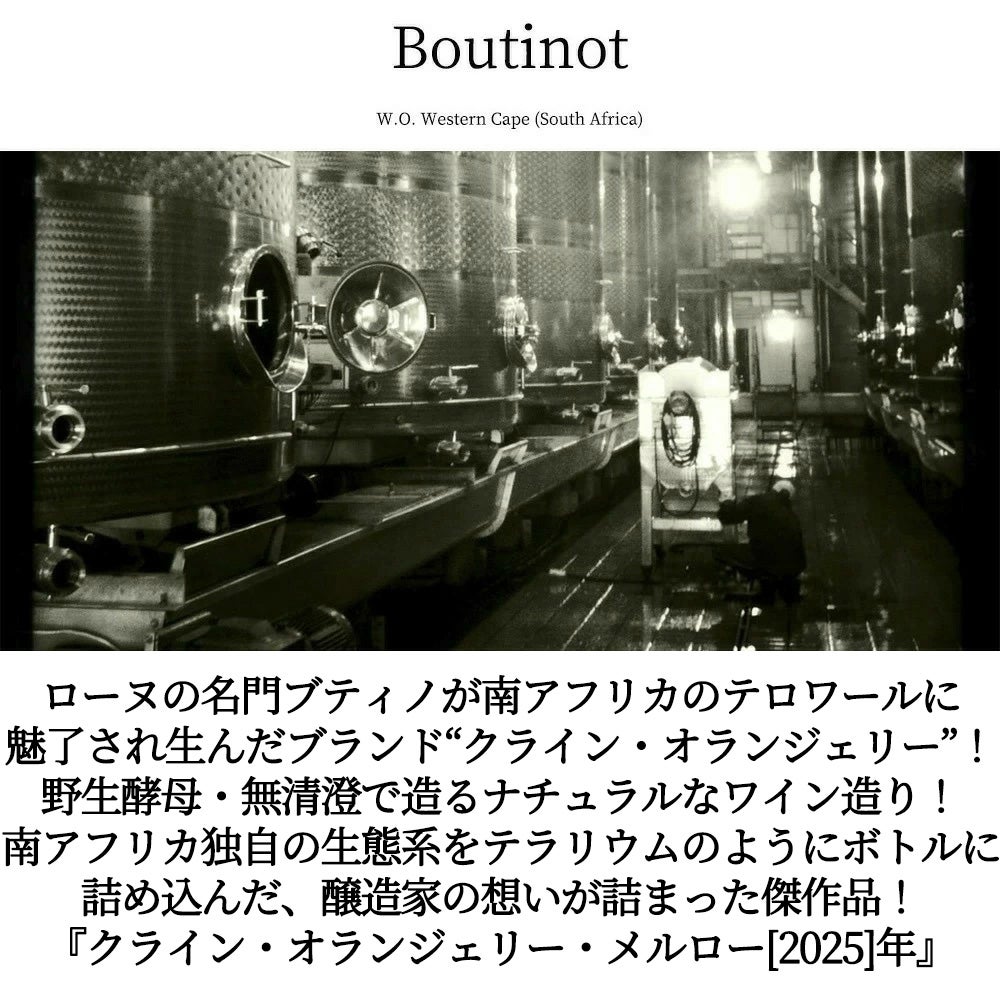 他の画像を見る クライン オランジェリー メルロー 2025 SAブティノ社 南アフリカ W.O.ウエスタン ケープ サステナブル農法 アルコール度数14.5%Kleine Oranjerie Fauna&Flora Merlot 2025 Boutinot 赤ワイン ミディアムボディ 辛口 当店特別価格 ¥ 1,138 税込 カートに入れる お気に入りに登録する