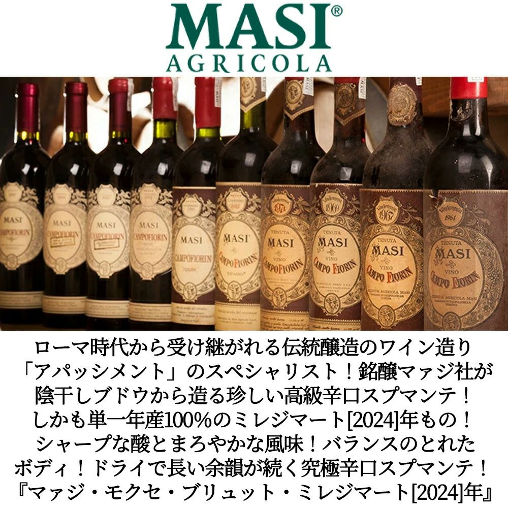他の画像を見る マァジ モクセ ブリュット ミレジマート 2024 マァジ社 スプマンテ ブリュット 正規品 白 泡 辛口MOXXE' Vintage 2024 MASI Spumante Brut 白ワイン スパークリング イタリア 辛口 当店特別価格 ¥ 3,082 税込 カートに入れる お気に入りに登録する