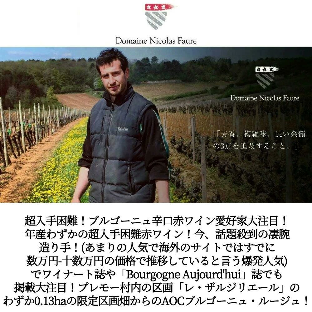 他の画像を見る 【お1人様1本限り】ブルゴーニュ ルージュ オー ザルジリエール 2023 蔵出し限定品 ドメーヌ ニコラ フォール元詰 正規品Bourgogne Rouge Aux Argillieres 2023 Domaine Nicolas Faure 赤ワイン フランス フルボディ ミディアムボディ 辛口 当店特別価格 ¥ 28,006 税込 在庫切れ 詳細を見る お気に入りに登録する