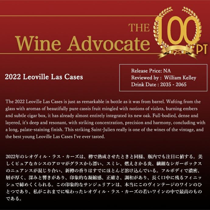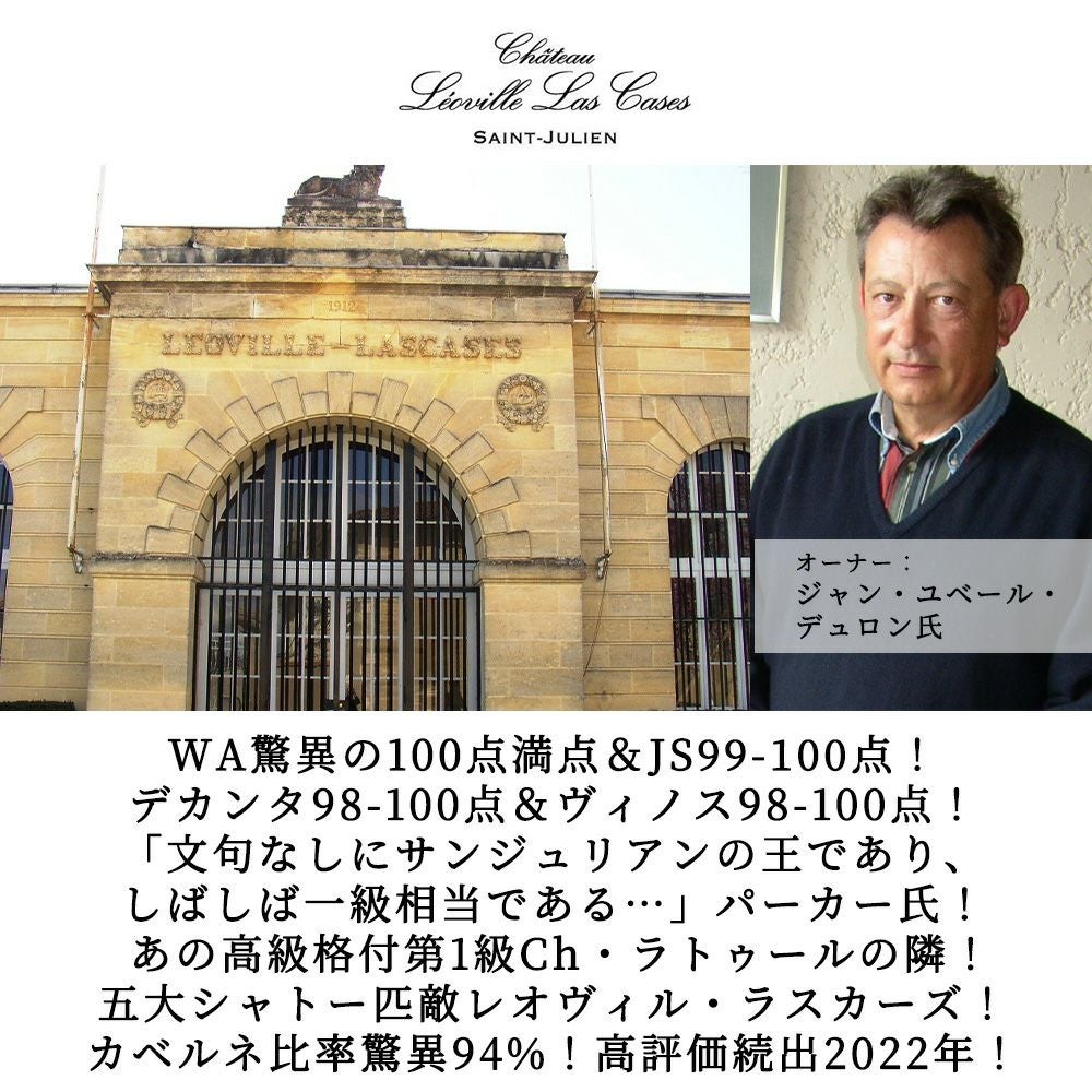 他の画像を見る シャトー レオヴィル ラスカーズ 2022 メドック グラン クリュ クラッセ 格付第二級 ワインアドヴォケイト驚異の98-100点&ジェームス サックリング99-100点Chateau Leoville Las Cases 2022 赤ワイン フランス フルボディ 辛口 当店特別価格 ¥ 51,184 税込 在庫切れ 詳細を見る お気に入りに登録する