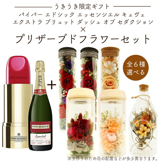 他の画像を見る 【送料無料】【うきうき限定ギフト】パイパー エドシック エッセンシエル キュヴェ エクストラ ブリュット ダッシュ オブ セダクション リップスティック&選べるプリザーブドフラワーセット 花 フラワー ギフト プレゼント 贈り物 誕生日 お祝い 内祝い 母の日 ワイン 花 当店特別価格 ¥ 12,265 税込 在庫切れ 詳細を見る お気に入りに登録する