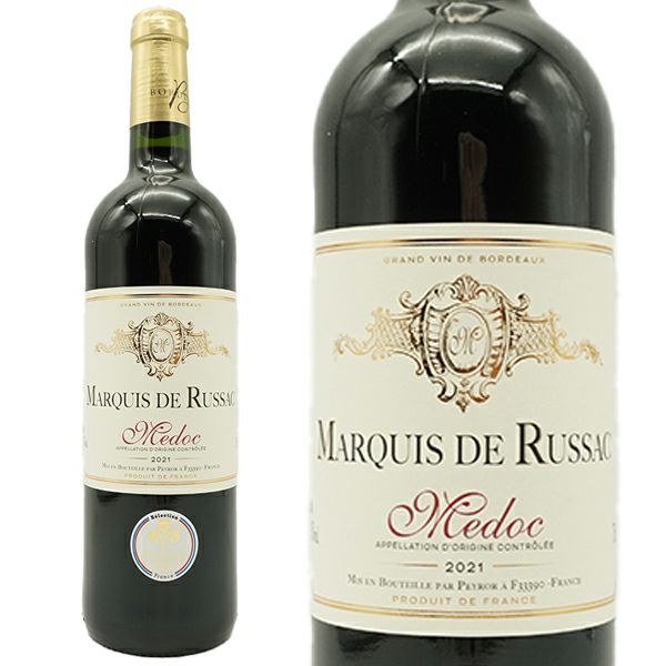 他の画像を見る マルキ ド リュサック[2021]年 AOCメドック シャトー元詰 70 Millions de Degustateurs 金賞受賞酒Marquis de Russac [2021] AOC Medoc (70 Millions de Degustateurs 2023 Gold Medal) 当店特別価格 ¥ 1,347 税込 在庫切れ 詳細を見る お気に入りに登録する