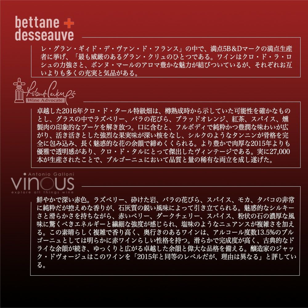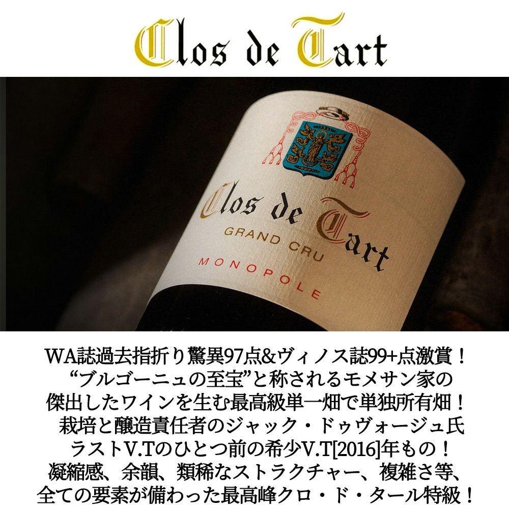 他の画像を見る クロ ド タール グラン クリュ 特級 2016 年 蔵出し限定品 ロバート パーカー ワインアドヴォケイト誌驚異の97点 正規品Clos de Tart Grand Cru 2016 Domaine J Mommessin (Domaine du Clos de Tart) 赤ワイン フランス フルボディ 辛口 送料無料 当店特別価格 ¥ 135,641 税込 在庫切れ 詳細を見る お気に入りに登録する